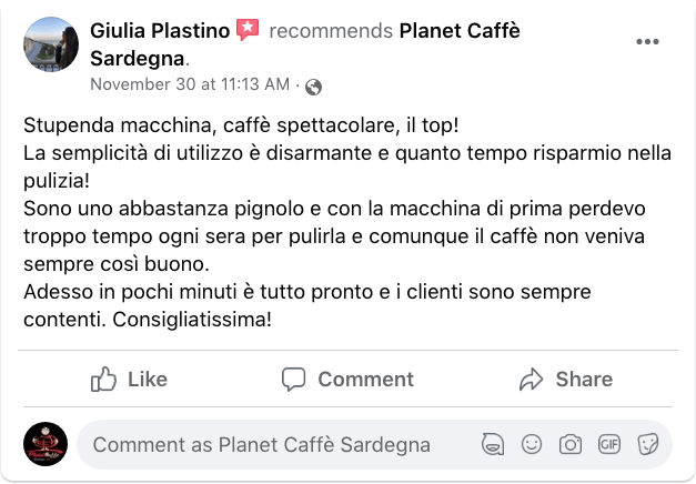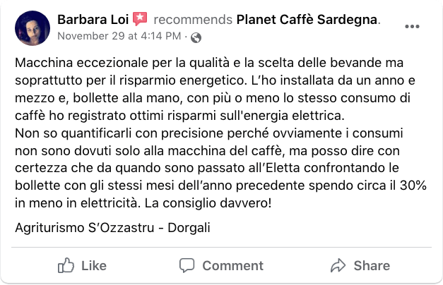 A questo scopo si avvale esclusivamente di Concessionari autorizzati, come Planet Caffè Sardegna, che con competenza e professionalità svolgono ogni giorno l'indispensabile servizio di assistenza.